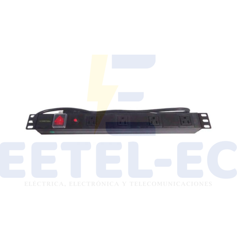 Connection PST-1904 Multitoma Horizontal rackeable de 4 Tomas para 1 unidad de rack 19″ en tamaño de bastidor estándar hasta 15 Amperios para una potencia total de 1875 Watts, color Negro.